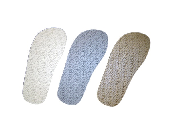 Material já cortado em pares, produzido em PVC, em padrões e cores variadas. São duráveis e confortáveis.